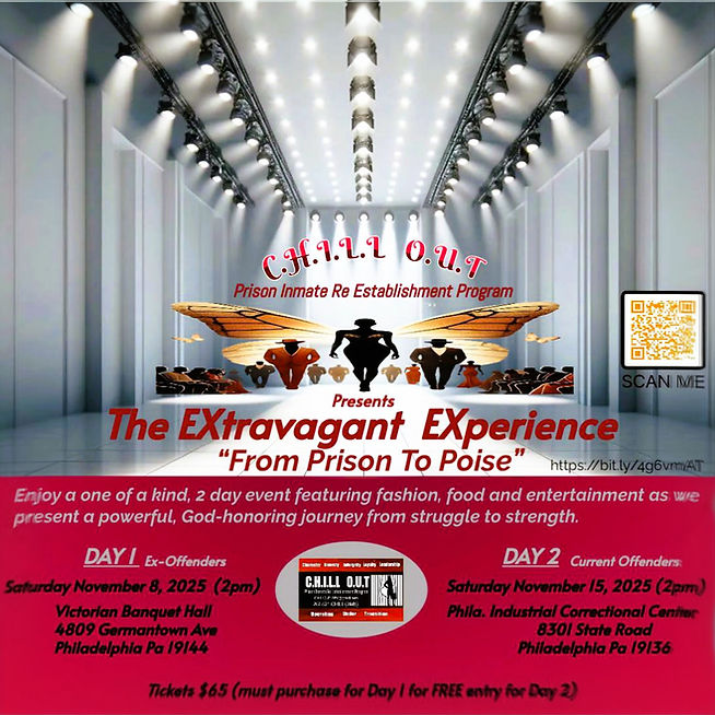 Join us for a powerful 2-day transformation through fashion, food, and faith — celebrating redemption, resilience, and restoration. Witness ex-offenders and current inmates walk boldly in purpose, poise, and praise.